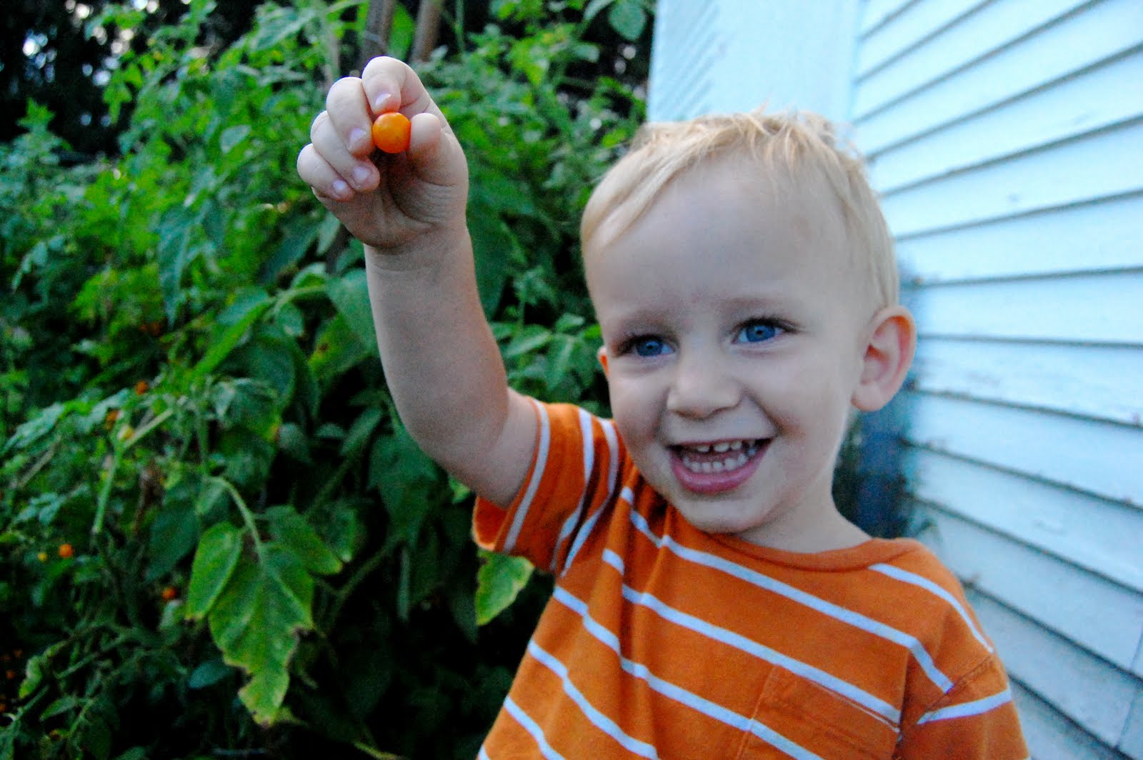 He's so sweet! where did you pick those tomatoes? It looks like so much fun.